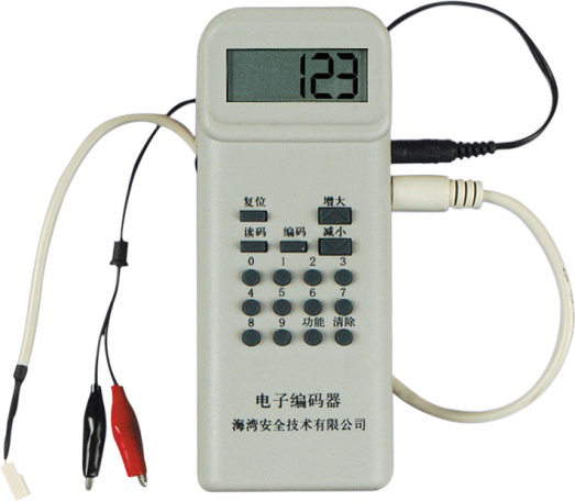 與探測器、模塊的總線端子相連,操作 ,開機后按下讀碼鍵,液晶屏上將顯示地址編碼。輸入探測器或模塊的地址編碼(1-242),按下“編碼”鍵進行編碼。若編碼成功,屏幕顯示下一個地址碼,此時,直接按下“編碼”鍵,可直接編入下一個地址碼。
