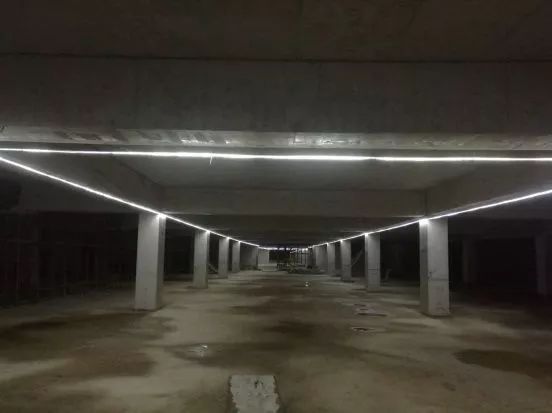 在地下室具備布設照明時,根據照明要求,沿梁下設置燈帶,燈帶連接使用專用接頭。相對傳統照明布設,LED燈帶具有以下特點:體積小,亮度高;綠色環保,節能;高效穩定,無連接處的陰影;使用壽命長(一般正常壽命在8~10萬小時),布置簡單,拆改方便快捷的特點。