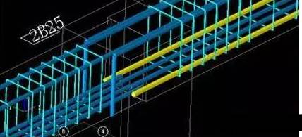 ⑷ 2Φ25 + 3Φ22(-3)/ 5Φ25 表示有兩排筋,上排筋為5根。2Φ25伸入支座,3Φ22,不伸入支座。下排筋 5Φ25,通長布置。