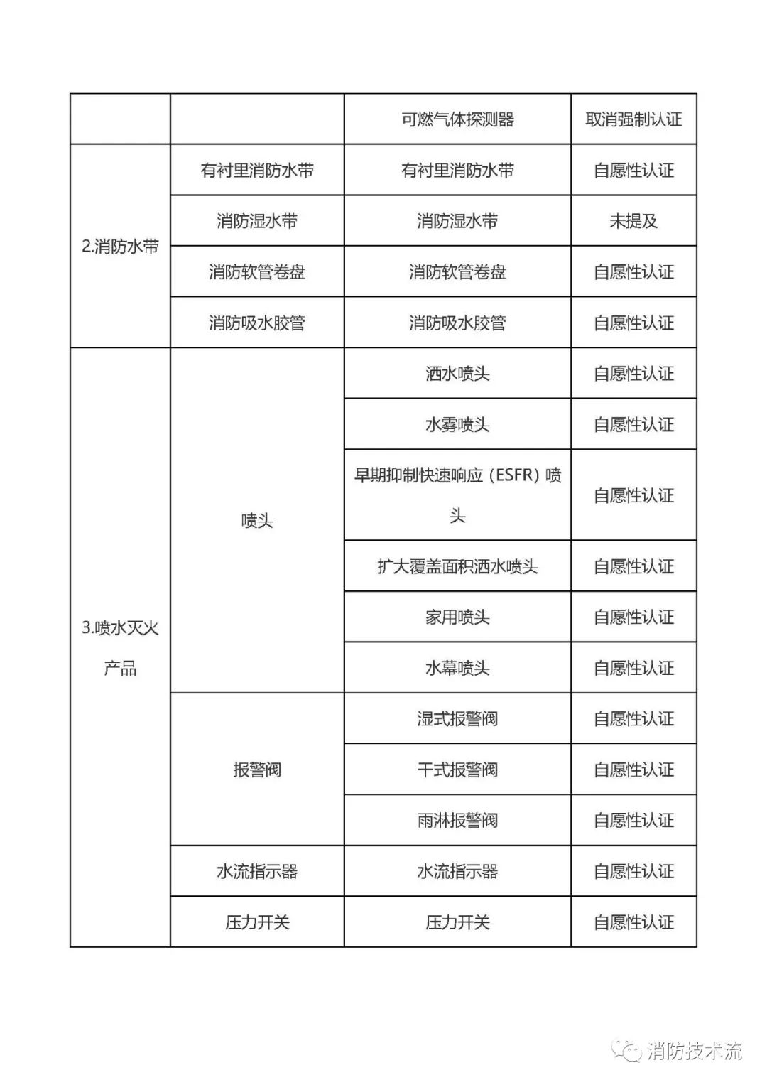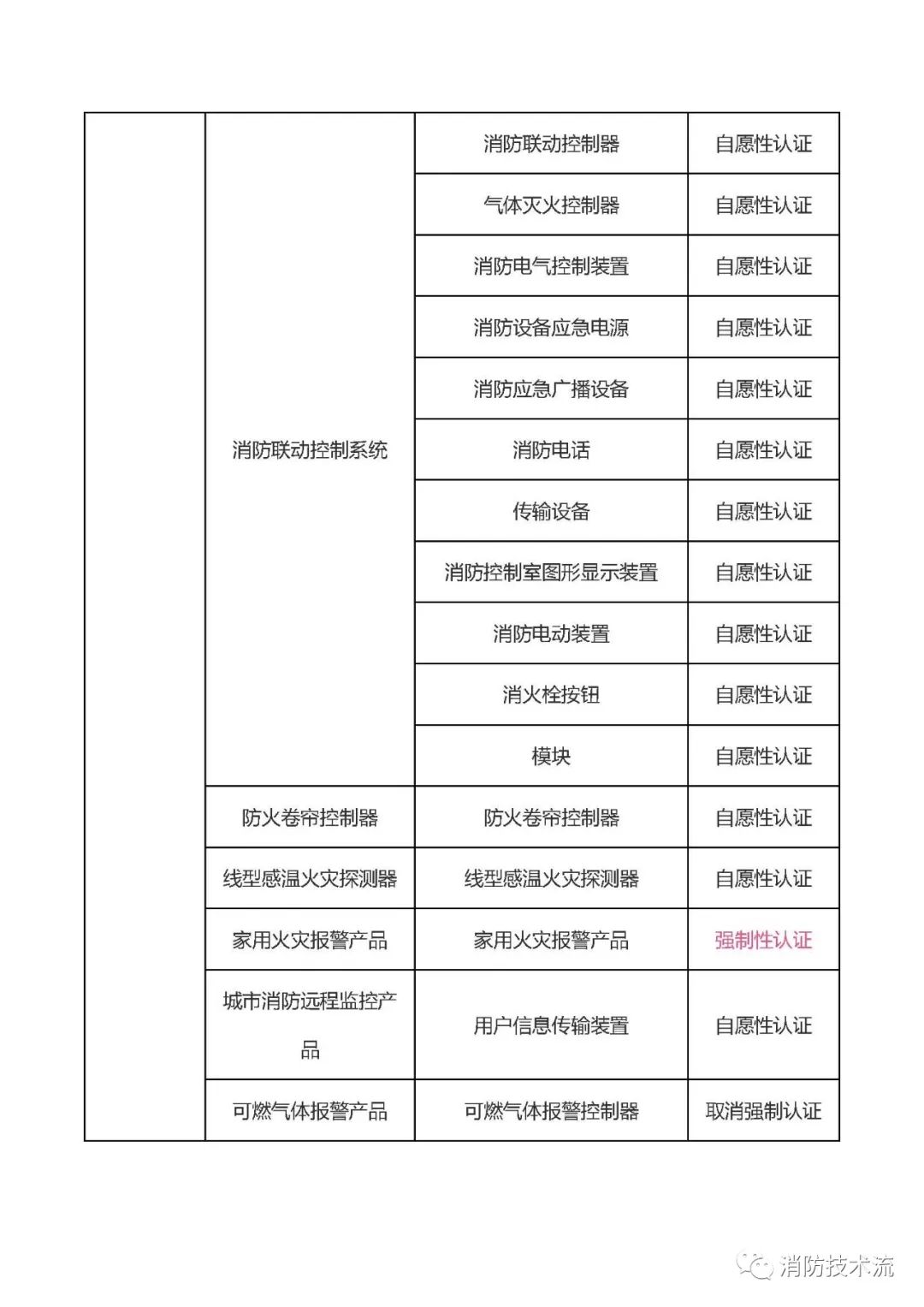 綜合取消強制性認證并開展自愿性認證的消防產品,得出最新仍需要強制性認證及自愿性認證目錄